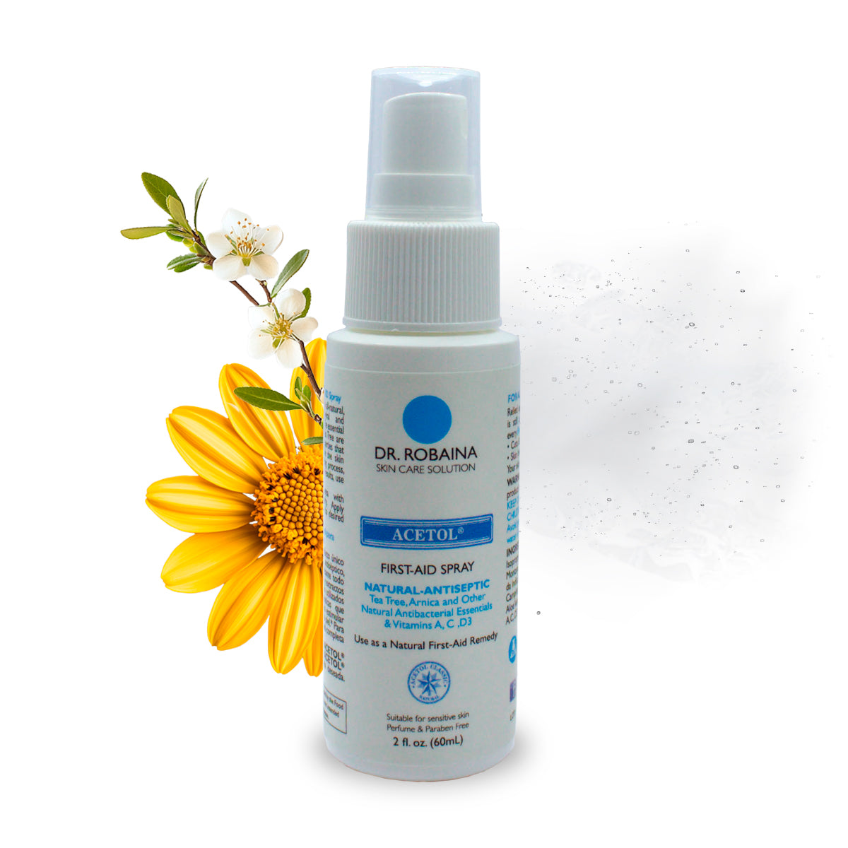ACETOL® First-Aid Spray is a unique formula with natural auxiliary anti-septic ingredients all in one. It is made up of essential oils, extracts and moisturizers that have the unique ability to help restore your skin while balancing your natural pH. Our essential oils and extracts of Arnica Montana and Tea Tree are proven to have antiseptic properties that work with Vitamins to soothe the skin and stimulate natural healing. For best results, use the entire line of ACETOL®. Your skin will thank you.