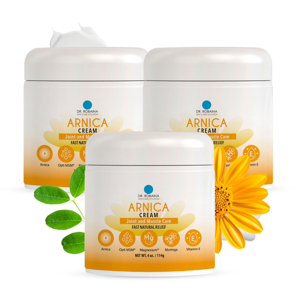 Experience the soothing power of our Arnica products, meticulously crafted to provide comfort for bruised skin and minor discomfort. Developed by Dr. Robaina, our range of products harnesses the natural properties of Arnica to support skin health and promote a healthier-looking appearance. Our Arnica products, including cream, gel, roll-on, and salve, are formulated with high-quality natural ingredients to ensure a gentle yet effective skincare routine. The Arnica extracts work synergistically with other natural components to soothe the skin and help reduce the appearance of swelling and bruising. Each form of application is designed for your convenience and preference. Whether you choose the cream, gel, roll-on, or salve, you can trust that you’re receiving a product that is easy to apply directly to the affected areas, providing comfort without leaving a greasy residue. Dr. Robaina’s expertise in developing these products guarantees a trusted and professional approach to skin care. With a commitment to quality, our Arnica products are your go-to choice for natural, gentle care. Discover the benefits of Dr. Robaina’s Arnica products and enjoy healthier-looking skin with a well-cared-for appearance. Trust in Dr. Robaina’s expert formulation for your skincare needs.