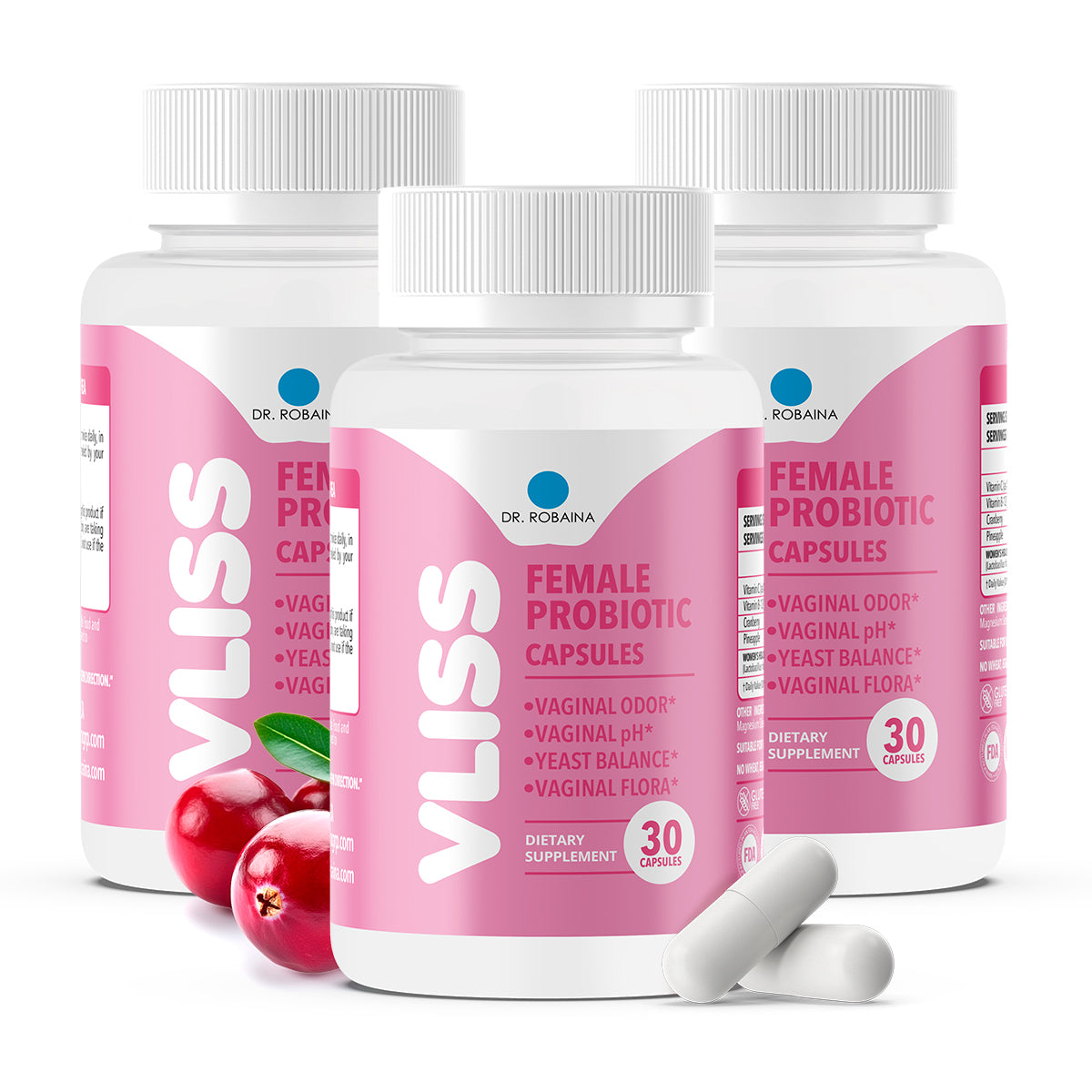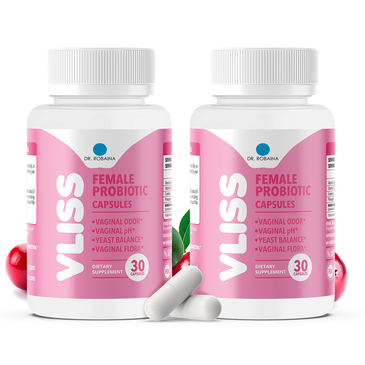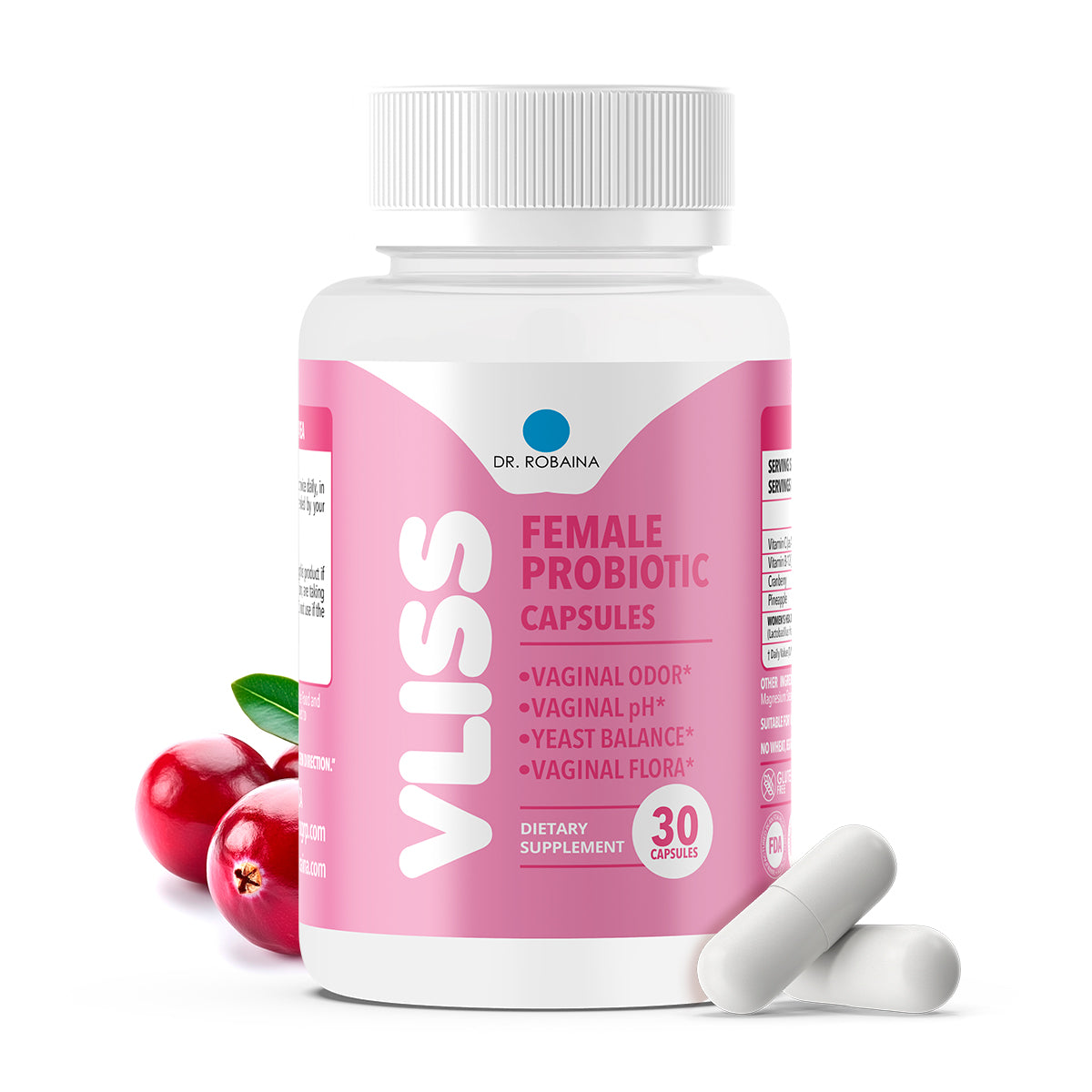 Discover a product formulated to support vaginal health with Vliss by Dr. Robaina. This daily supplement is designed to promote balance in the vaginal flora, offering support for your overall well-being and comfort.